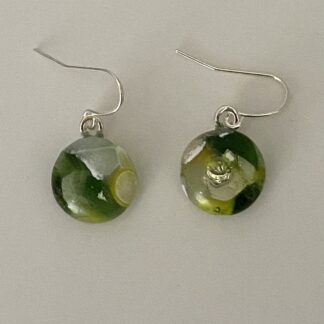 Green/Blue Dichroic Pendant. Fused glass with a silver-toned bail. It has a pattern of butterflies made in the glass. Measures 1 1/2 inches height and 1 inches width. Comes with a black cord necklace, 18-20 inches.